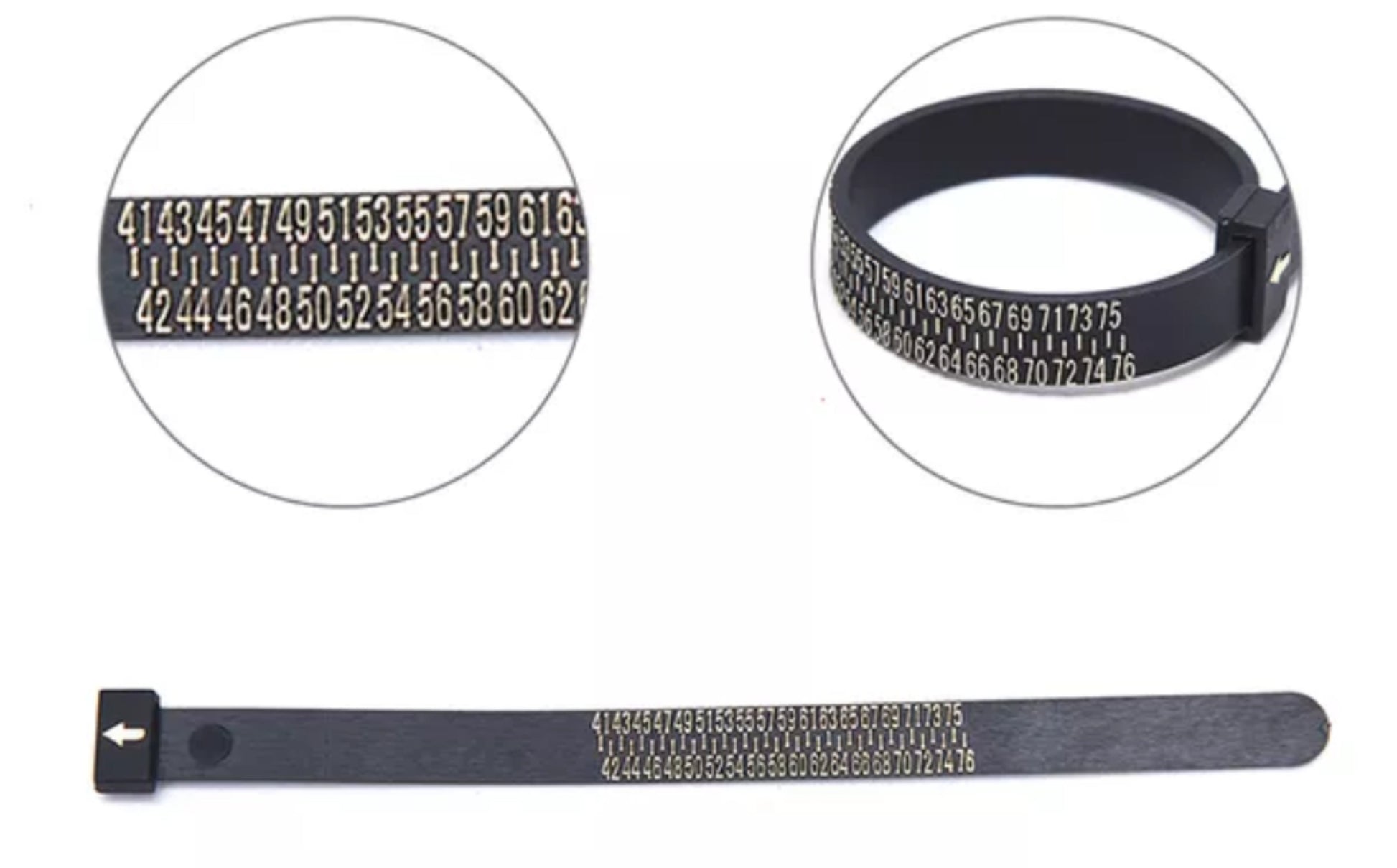 Il saura prendre vos mesures avec une précision parfaite et est particulièrement facile à utiliser. Vous n'aurez qu'à le glisser et le serrer confortablement sur votre doigt, et la flèche vous indiquera la taille exacte. Vous recevrez bien sûr avec votre baguier un mode d'emploi pour vous accompagner pas à pas dans la mesure.
